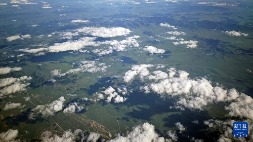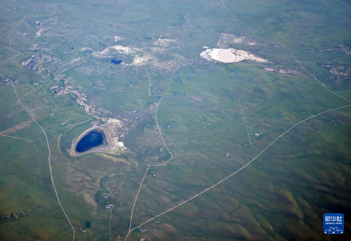內蒙古錫林郭勒草原上的湖泊(7月29日攝,手機照片)。(新華社記者 賈立君 攝)