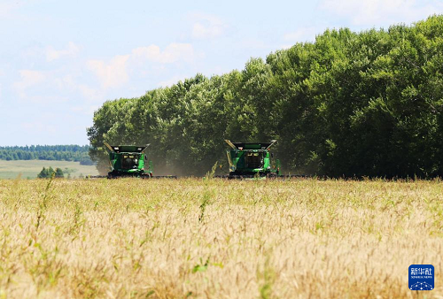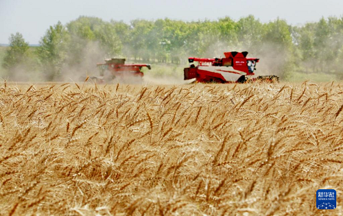 8月5日,在北大荒集團(tuán)黑龍江紅星農(nóng)場第二管理區(qū),大型收割機(jī)在搶收小麥。(新華社發(fā) 侯越 攝)