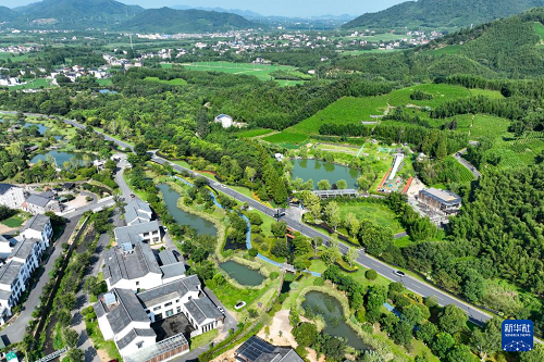 這是8月5日拍攝的浙江省杭州市余杭區(qū)徑山村景色(無人機(jī)照片)。(新華社記者 毛竹 攝)