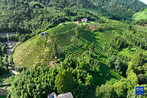 這是8月5日拍攝的浙江省杭州市余杭區(qū)徑山村茶山(無人機(jī)照片)。(新華社記者 毛竹 攝)