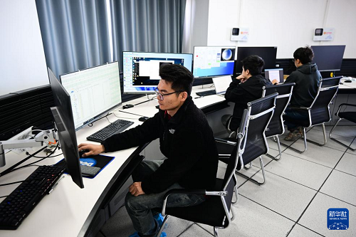7月29日,由中國科學院國家天文臺實施的用于太陽磁場精確測量的中紅外觀測系統(tǒng)AIMS項目科研人員在工作。(新華社記者 張龍 攝)