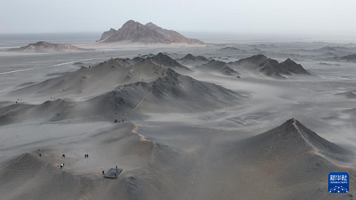 7月30日,游客在冷湖鎮(zhèn)黑獨山游玩(無人機照片)。(新華社記者 張龍 攝)