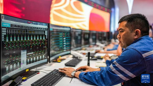 工作人員在國家電投貴州金元平遠電廠查看發(fā)電設(shè)施運轉(zhuǎn)情況(8月5日攝)。(新華社記者 陶亮 攝)