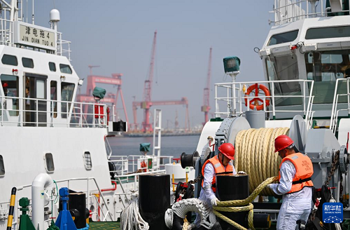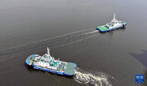 8月13日,由4艘純電動(dòng)港作拖輪組成的“綠色艦隊(duì)”在中船天津碼頭鳴笛啟航。