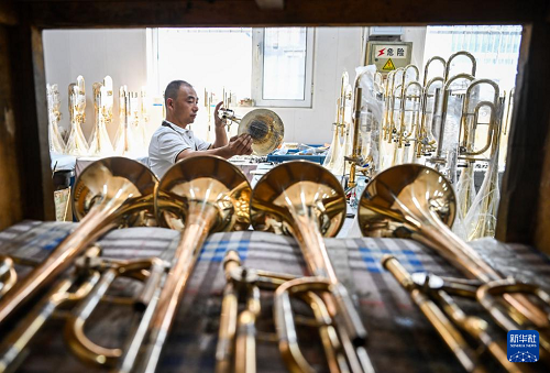 位于天津市靜海區(qū)的蔡公莊鎮(zhèn)是國內(nèi)西洋管樂器集中生產(chǎn)與集散中心之一。近年來,當(dāng)?shù)卦谄放拼蛟?、?guī)劃設(shè)計、專業(yè)人才培養(yǎng)等多方面持續(xù)發(fā)力,推進(jìn)樂器文化創(chuàng)意產(chǎn)業(yè)基地建設(shè),不斷提升樂器產(chǎn)業(yè)的知名度與影響力。