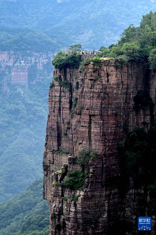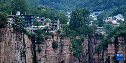 這是位于絕壁峽谷上的郭亮村(8月16日攝)。(新華社記者 朱祥 攝)