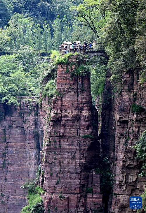 進(jìn)入暑期以來(lái),河南萬(wàn)仙山景區(qū)迎來(lái)旅游高峰。位于太行山深處的河南省輝縣市萬(wàn)仙山景區(qū)紅巖絕壁大峽谷景色壯美,以雄、壯、險(xiǎn)、奇為特色,吸引游客前來(lái)游覽。