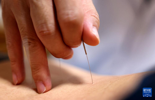8月18日,江蘇省蘇州市姑蘇區(qū)金閶街道彩香二村社區(qū)衛(wèi)生服務(wù)站醫(yī)生為居民進(jìn)行針灸診療。(新華社發(fā) 杭興微 攝)