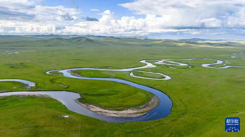 這是8月19日在內(nèi)蒙古呼倫貝爾市陳巴爾虎旗拍攝的莫爾格勒河風(fēng)光(無人機照片)。(新華社記者 馬金瑞 攝)