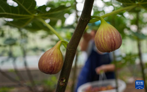 8月24日在新泰市龍廷鎮(zhèn)拍攝的進(jìn)入收獲期的無(wú)花果。(新華社記者 徐速繪 攝)
