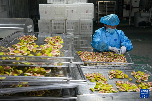 8月24日,在新泰市龍廷鎮(zhèn),一家食品加工企業(yè)的工作人員在生產(chǎn)加工無(wú)花果果干。(新華社記者 徐速繪 攝)
