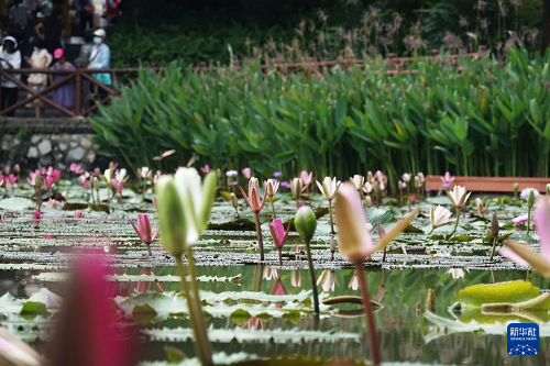 初秋時節(jié),廣西南寧市人民公園培育的900余株睡蓮陸續(xù)綻放,吸引游人前來觀賞。
