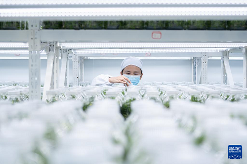 8月27日,工作人員在廣南縣岜奪社區(qū)一處鐵皮石斛組培基地查看鐵皮石斛苗生長情況。(新華社記者 高詠薇 攝)