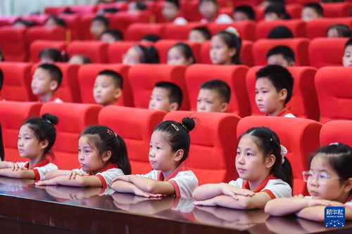 9月4日,北京師范大學(xué)南湖附屬學(xué)校的學(xué)生們?cè)趯W(xué)校大講堂參加開學(xué)第一課《紅船精神》。(新華社記者 徐昱 攝)