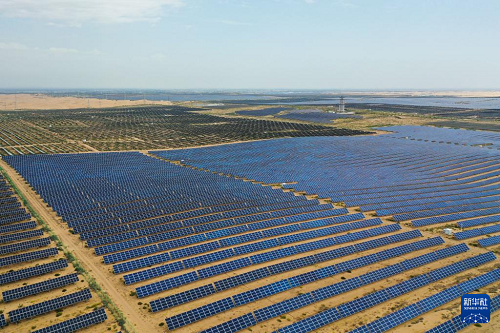 內(nèi)蒙古鄂爾多斯市達拉特旗境內(nèi)的庫布其沙漠里,一塊塊藍(lán)色光伏板鱗次櫛比、鋪陳排開,將沙海變成綠能涌動的“藍(lán)?!薄=陙?,達拉特旗依托光伏基地建設(shè),推廣應(yīng)用“光伏治沙”模式,實現(xiàn)光伏板上發(fā)綠電,板下治理沙漠生態(tài),既帶動新能源產(chǎn)業(yè)發(fā)展,也促進庫布其沙漠治理。