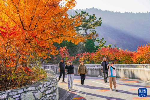 11月4日,游客在河北省遵化市南山常樂(lè)谷景區(qū)賞景拍照。(新華社發(fā) 劉滿(mǎn)倉(cāng) 攝)