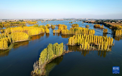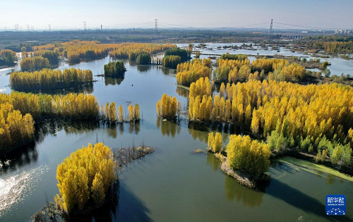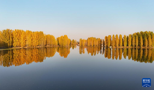 初冬時(shí)節(jié),在河北省邢臺市隆堯縣亦城村泜河沿岸,樹葉金黃,與水面、河岸相映襯,勾勒出一幅美麗和諧的自然畫卷。