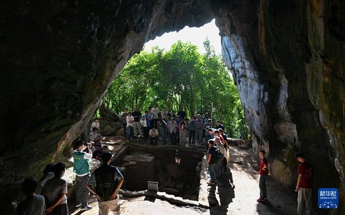 11月8日,考古專家在三亞落筆洞遺址觀察發(fā)掘現(xiàn)場(chǎng)。(新華社記者 郭程 攝)