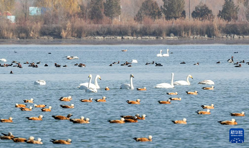 入冬以來,大批候鳥陸續(xù)飛抵位于甘肅省張掖市的張掖黑河濕地國家級自然保護區(qū)高臺段休憩覓食。作為全球9條候鳥遷徙通道之一的中亞通道的重要中轉站,每年約有18萬至25萬只水禽在張掖黑河濕地國家級自然保護區(qū)集結、停歇。