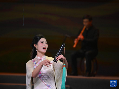 12月10日,南音社團代表在“南音薪傳 四海弦歌”專場演出上演唱《遠望鄉(xiāng)里》。(新華社記者 姜克紅 攝)