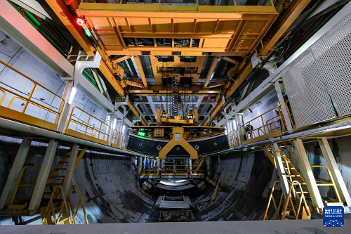 1月6日,中鐵十四局施工人員在“深江1號(hào)”盾構(gòu)機(jī)上進(jìn)行管片螺栓緊固工作。(新華社記者 毛思倩 攝)