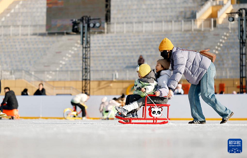 1月17日,人們在銀川文旅集團(tuán)覽山公園落日冰場玩耍。(新華社記者 王鵬 攝)