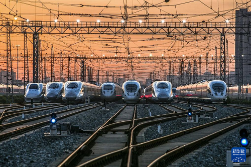 春運大幕即將拉開,中國鐵路西安局集團有限公司西安動車段內,高鐵動車組靜候待發(fā)。