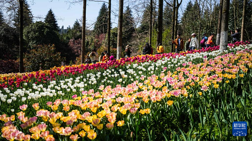 近日,貴州省黔南布依族苗族自治州龍里縣龍架山國家森林公園內(nèi)的數(shù)萬株郁金香競相綻放,吸引各地游客前來游玩賞景。