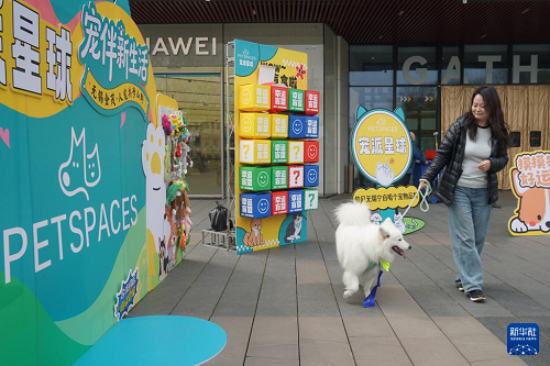 3月15日,在無錫市運河匯街區(qū),一位女士帶著寵物狗參加活動。(新華社發(fā) 劉臻睿 攝)