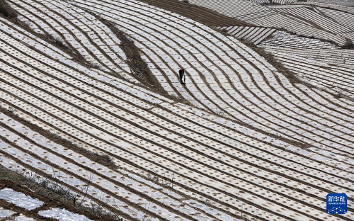 連日來,在黃土高原上的甘肅省天水市武山縣,當?shù)剞r(nóng)民抓住近期降雨較多、土壤墑情好的有利時機,及時整地、施肥、覆膜保墑,覆膜后的山地梯田成為黃土高原上一道亮麗的春日風景。