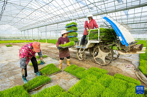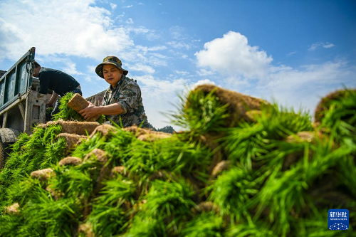 4月1日,在湖南省常寧市蘭江鄉(xiāng)景星村,農(nóng)民轉(zhuǎn)運早稻秧苗。(新華社發(fā) 周秀魚春 攝)