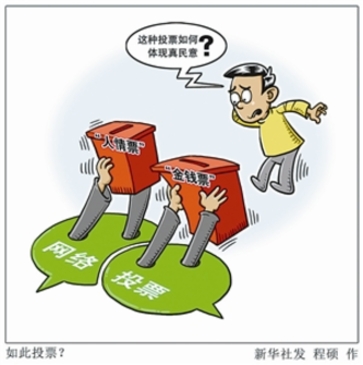 從紅遍大江南北的超女、快男開始,各種評選活動日益增多,最萌寶貝、最美司機、最美景點等等,你方唱罷我登場,好不熱鬧。投票手段也不斷演進,手機短信、網(wǎng)絡海選、朋友圈投票等,花樣翻新、不一而足。投票方式雖與時俱進,衡量投票結(jié)果的標準卻未變,票數(shù)多少固化為讓各方“信服”的指標,如何獲得票數(shù)則一概不論。