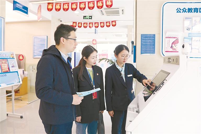 江蘇省盱眙縣紀委監(jiān)委緊盯黨員干部通過高息放貸、投資入股、代持或委托理財?shù)仁袌龌袨楂@取非法利益問題,深挖查處各類新型腐敗和隱性腐敗。圖為近日,該縣紀檢監(jiān)察干部在某銀行核實相關(guān)情況。王小龍 攝