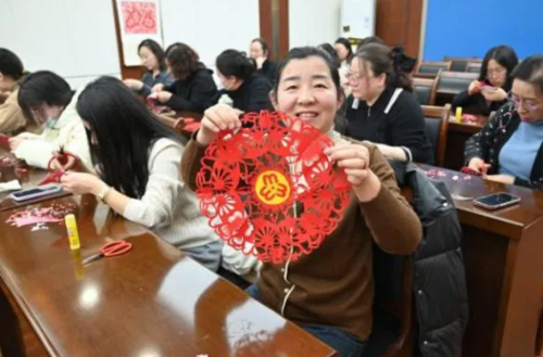 此次活動特邀五臺非遺剪紙傳承人王森煒現(xiàn)場教學(xué),從折疊技巧到紋樣設(shè)計,從鏤空雕刻到細節(jié)精修,干警們在老師的指導(dǎo)下沉浸式感受剪紙藝術(shù)的魅力。紅紙翻飛間,一幅幅寓意幸福吉祥、展現(xiàn)女性力量的剪紙作品逐漸成型。指尖流淌的不僅是傳統(tǒng)技藝,更是檢察女性剛?cè)岵?、匠心獨運的精神底色。