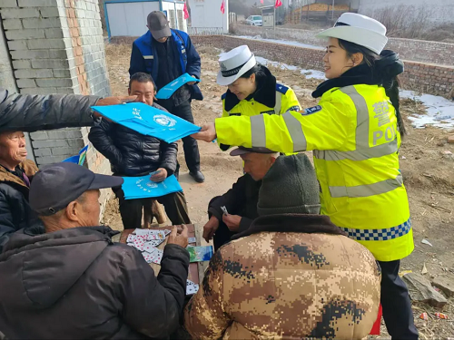 1月29日,五臺縣公安局交管大隊綜合中隊宣傳民輔警走進(jìn)國道338沿線東馬村、興鄭村,開展“平安春運 交警同行”主題宣傳活動,將交通安全知識送到田間地頭、農(nóng)家院落,為即將到來的春運保駕護(hù)航。