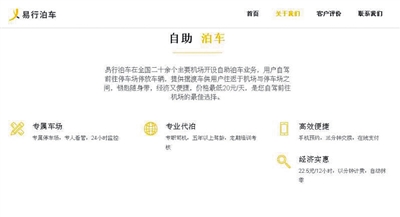 易行泊車官網(wǎng)上的自我介紹,稱是“自駕前往機場的最佳選擇”。網(wǎng)絡截圖