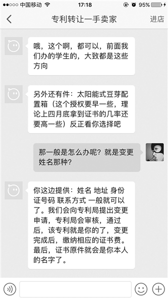 在一家機構(gòu)網(wǎng)店上,北青報記者看到,曾經(jīng)購買過“實用新型專利申請或轉(zhuǎn)讓”的賣家評價稱,“感覺很方便,不用自己一個人絞盡腦汁熬夜了,服務為自己省了很多力,果然人多力量大,相信最后能拿到證書。”