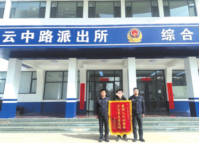 經(jīng)過4小時不懈搜尋,次日凌晨1時許,民輔警在城區(qū)梧桐苑小區(qū)附近人行道上發(fā)現(xiàn)獨自徘徊的老人,確認老人身體無礙后,將其安全護送回家??吹桨踩粺o恙的老人,家屬激動不已,緊緊握住民輔警的手連連道謝。不久后,他們特意將一面印有“感謝人民好警察 深夜尋親顯真情”的錦旗送到云中路派出所,再次向深夜不辭辛勞、全力尋人的民輔警表達誠摯謝意。
