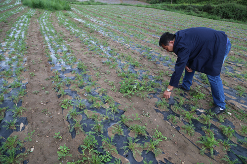 7月21日,靜樂縣堂爾上鄉(xiāng)呂呂溝村佛光合作社村民解晉才正在察看瑪咖長勢(shì)。近年來,靜樂縣積極引導(dǎo)農(nóng)民根據(jù)市場(chǎng)需求發(fā)展特色農(nóng)產(chǎn)品種植,先后引進(jìn)了藜麥、瑪咖、黑枸杞等特色農(nóng)產(chǎn)品,目前全縣種植38000余畝,形成了種植、采收、加工、銷售為一體的產(chǎn)業(yè)鏈,帶動(dòng)農(nóng)民增收致富。(閆曉梅 攝)
