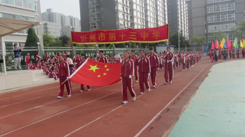 沐浴著秋天的朝陽,享受著清爽的秋風(fēng)。9月28日上午,忻州市第十三中學(xué)第十一屆秋季運動會開幕式在學(xué)校操場隆重舉行。伴隨著激昂的運動員進行曲,國旗隊、鼓樂隊、彩旗隊、裁判員代表和運動員方隊秩序井然而又氣勢磅礴地走入會場。在莊嚴(yán)的國歌聲中,全體師生凝神肅立,齊唱國歌。鮮艷的五星紅旗在操場上冉冉升起。