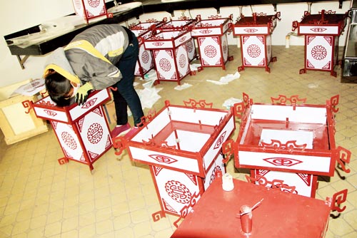 12月5日,原平市天牙山景區(qū)工作人員正在安裝新燈籠。此次天牙山景區(qū)將更換100 個(gè)已經(jīng)破損和陳舊的燈籠