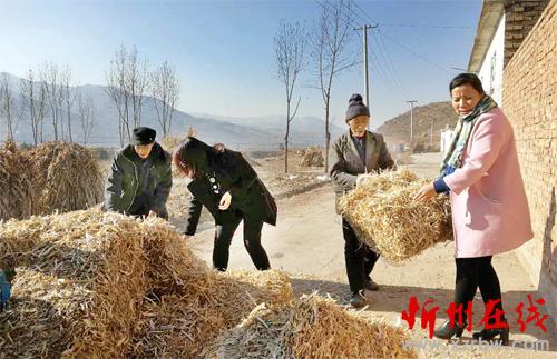 據(jù)了解,石家會村共有精準(zhǔn)扶貧戶51戶,今天,每戶將分到10捆草料共500斤。同時,每戶還將領(lǐng)到一塊3米的漆布,一個不銹鋼鍋蓋,一塊床單。來自縣委辦、水利局的住村工作隊(duì)隊(duì)員們早早就在院子里集合,他們將幫助貧困戶領(lǐng)到草料等物資,并運(yùn)送到家里,每個貧困戶的臉上都是喜氣洋洋。