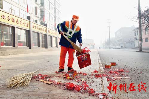 2月3日,年后上班首日,原平市的環(huán)衛(wèi)工人在清理街面的“開門炮”碎屑。部分商家仍有燃放“開門炮”的習慣,意為年后開張討個好彩頭。燃放過后,環(huán)衛(wèi)工人四處奔忙,集中清理滿地碎屑,增加了繁重的工作量。(褚震 攝)