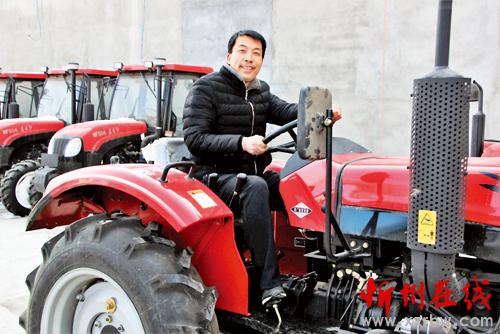 2月25日,原平市上封村村民孟寶生在該市農(nóng)機(jī)公司購買了一臺(tái)東方紅牌拖拉機(jī),享受政府農(nóng)機(jī)補(bǔ)貼,高高興興開回家。原平市農(nóng)機(jī)公司發(fā)揮農(nóng)機(jī)供應(yīng)主渠道作用,積極組織農(nóng)機(jī)貨源,大中小不同型號、平地山坡地耕播旋功能等農(nóng)機(jī)具品種齊全,滿足了農(nóng)民春耕備耕生產(chǎn)需求。(吉建平 攝)