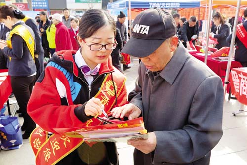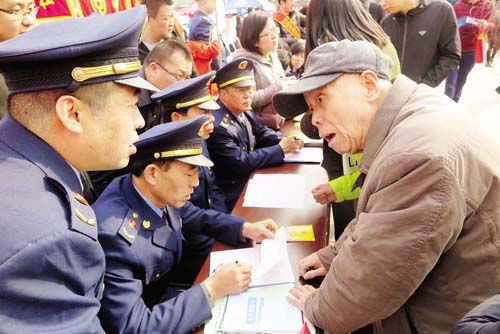 3月15日,忻州城區(qū)體育廣場上以“網(wǎng)絡(luò)誠信消費(fèi)無憂”為主題的3·15國際消費(fèi)者權(quán)益日宣傳活動(dòng)火熱進(jìn)行?;顒?dòng)現(xiàn)場,各部門和企業(yè)通過發(fā)放宣傳資料、設(shè)立咨詢臺、現(xiàn)場受理群眾投訴舉報(bào)、提供服務(wù)等方式,宣傳《消費(fèi)者權(quán)益保護(hù)法》、《反不正當(dāng)競爭法》、《無照經(jīng)營查處辦法》等法律法規(guī)以及食品藥品安全、識假辨假等各類知識,吸引了眾多群眾積極參與。受理投訴臺前,陸續(xù)有消費(fèi)者前來投訴,且有不少年輕人,所反映的問題既有涉及家具、汽車等金額較大的線下消費(fèi)活動(dòng),也有通過電商平臺進(jìn)行的線上交易。市工商局、消費(fèi)者協(xié)會的工作人員將消費(fèi)者投訴的問題一一記錄在冊,并表示會盡快調(diào)查處理。本版圖片攝影 魯明強(qiáng) 王 菲