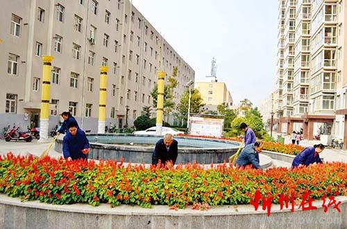 忻州城區(qū)鴻喜園小區(qū)物業(yè)管理辦始終以創(chuàng)建文明城市、共建美好家園為宗旨,小區(qū)內(nèi)呈現(xiàn)出一派綠色、整潔、優(yōu)雅的景象,被市房地產(chǎn)管理局評(píng)為優(yōu)秀住宅小區(qū)。圖為近日小區(qū)物業(yè)工作人員修建花葉,美化環(huán)境,以實(shí)際行動(dòng)迎接黨的十九大勝利召開(kāi)。王金龍 攝