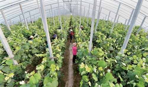 前幾年,定襄的設施農(nóng)業(yè)種植分散、設施條件差、收益低。受祿鄉(xiāng)在發(fā)展設施農(nóng)業(yè)的過程中總結出了“支部引領,村委支持,黨員帶頭,群眾跟進,吸納貧困戶”的經(jīng)驗并在全縣起到示范作用。建規(guī)模園區(qū)土地流轉首當其沖,受祿鄉(xiāng)在流轉土地的時候,采取“農(nóng)民報名,統(tǒng)一規(guī)劃,簽訂合同”的辦法。流轉集中的土地,各村負責“三通一平”。定襄的設施農(nóng)業(yè),已經(jīng)從以前的改良式塑料大棚,發(fā)展到現(xiàn)在廣泛推廣的下凹式日光溫室和全鋼架春秋大棚,棚內作物也實現(xiàn)了由普通蔬果到甜瓜、草莓、西蘭花等“新特優(yōu)”產(chǎn)品的轉型。