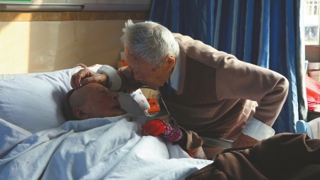 “我20歲了!”鐘婆婆的回答讓護工有些哭笑不得,也許她還記得,20歲是她最好的年紀,那一年她嫁給了他。時光涌動,穿過她的記憶,或許她的年華定格在了20歲,只有身邊的他,記得他們已經相伴了70年。(記者 田之路 吳楓)