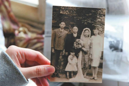 廖思源從家里的木質老式柜子里,拿出一本相冊。他用布滿皺紋的手翻開,拿出一張黑白婚紗照,看了又看:廖思源身著白襯衣和西裝,打著領帶,看起來格外精神。鐘貞淑頭戴婚紗,一席花色的長裙,右手捧著鮮花。兩人手挽著手,表情有點嚴肅,濃濃的年代感將時間拉回到了1949年。