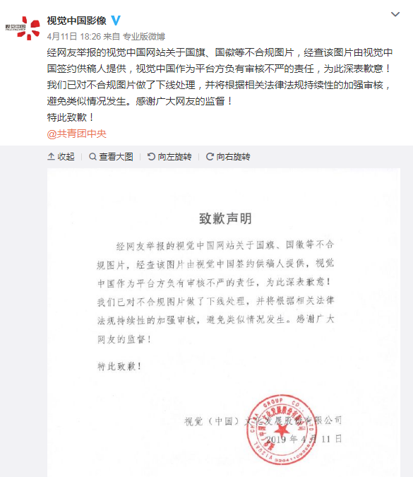 視覺中國道歉了